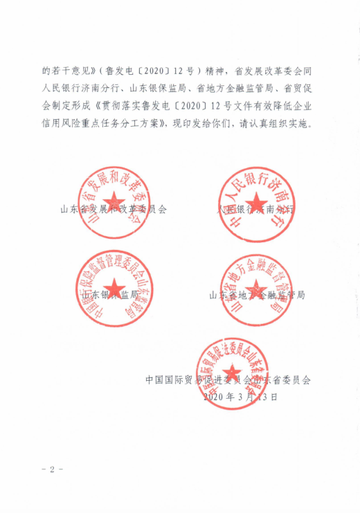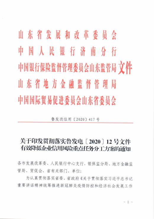 关于印发贯彻落实鲁发电【2020】12号文件 有效降低企业信用风险重点任务分工方案的通知