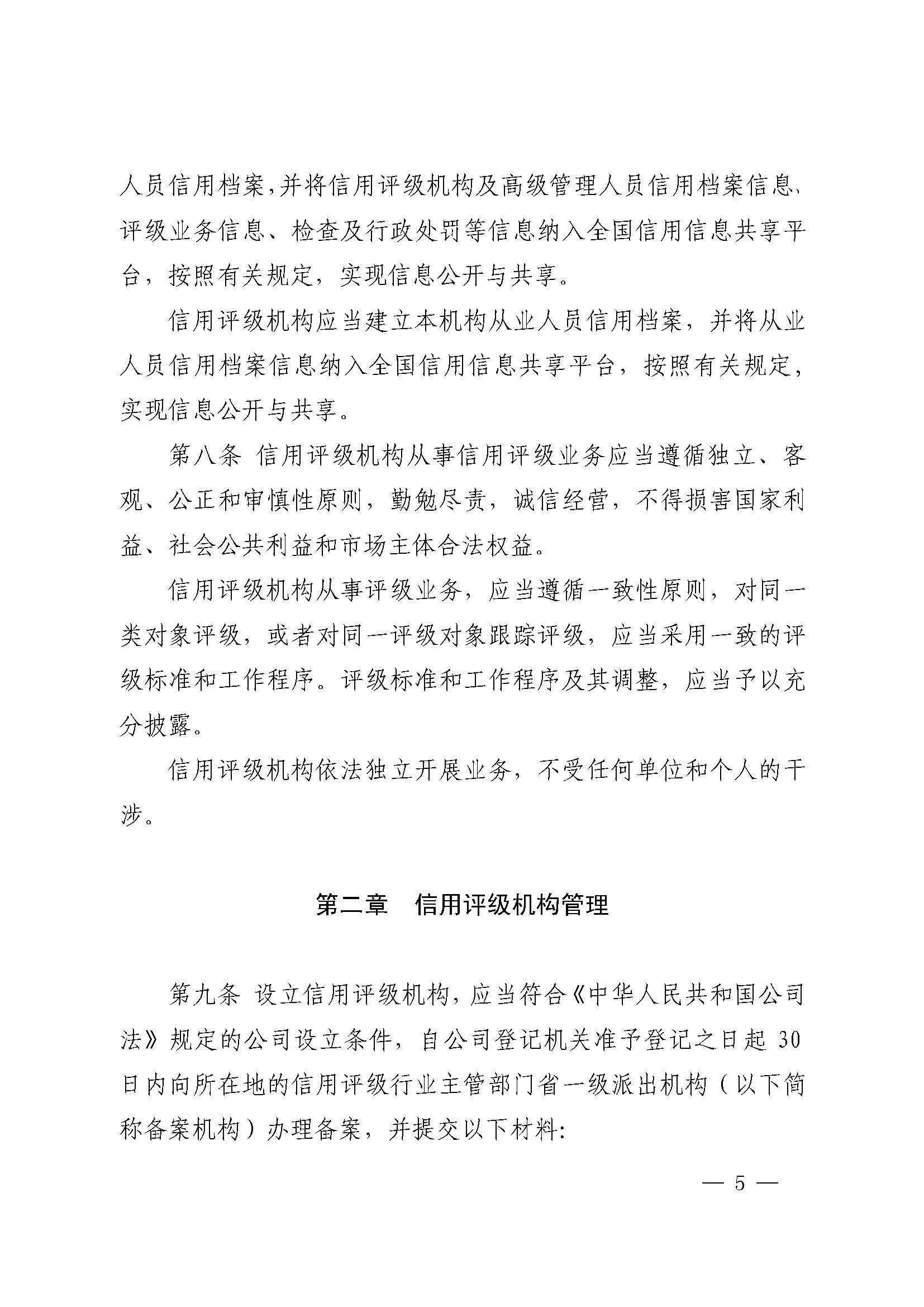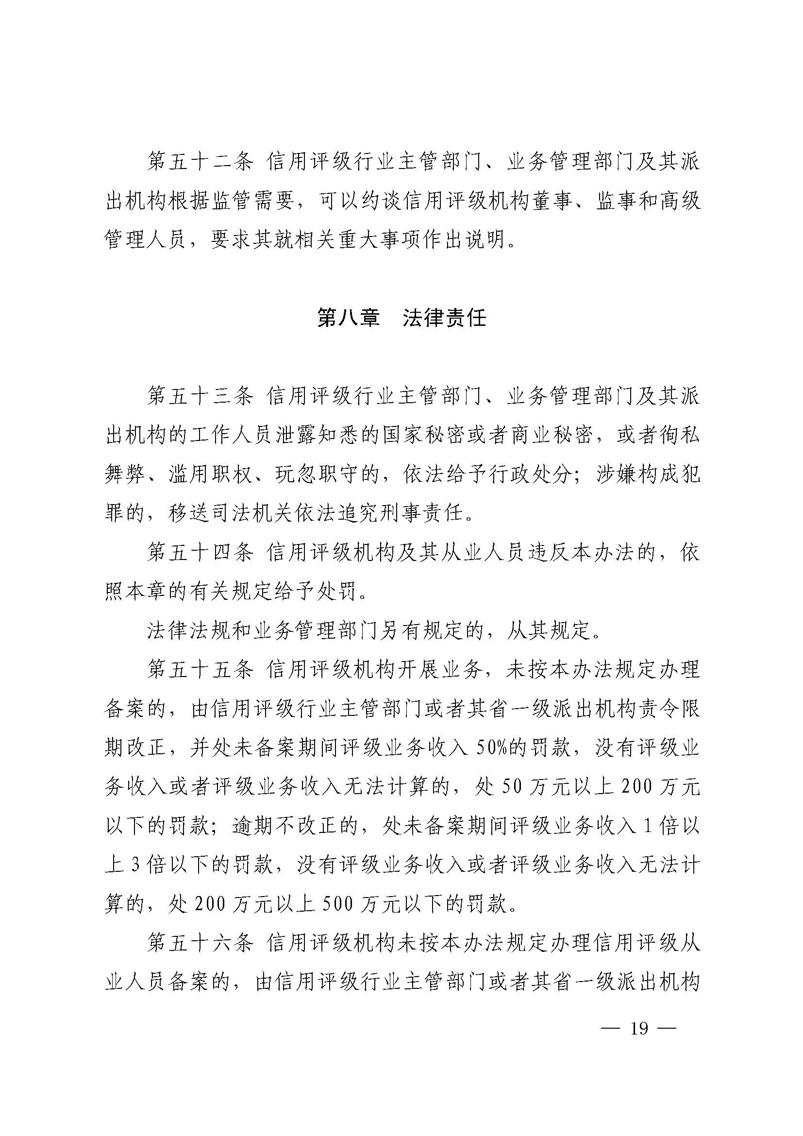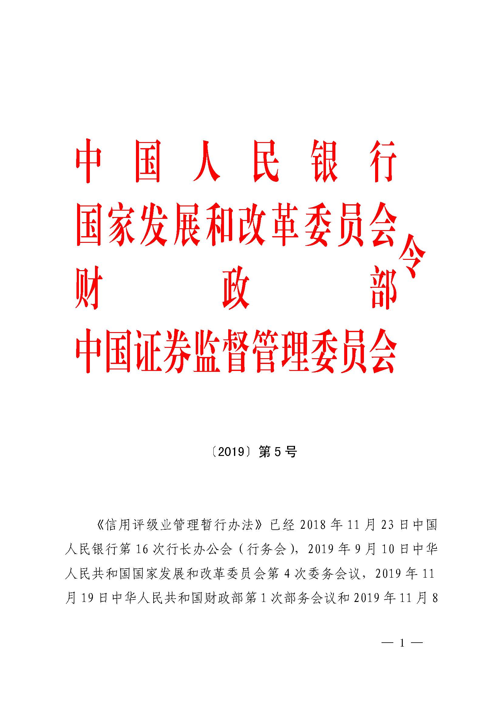 中国人民银行 国家发展和改革委员会 财政部 中国证券监督管理委员会令〔2019〕第5号(信用评级业管理暂行办法)
