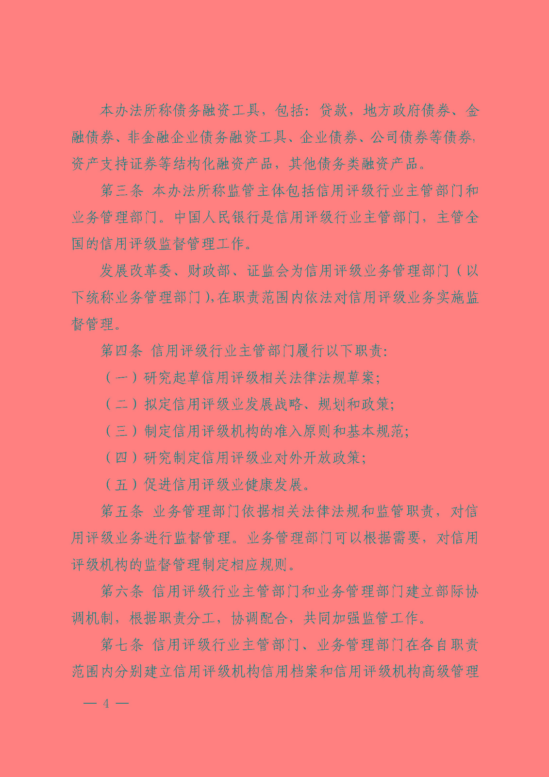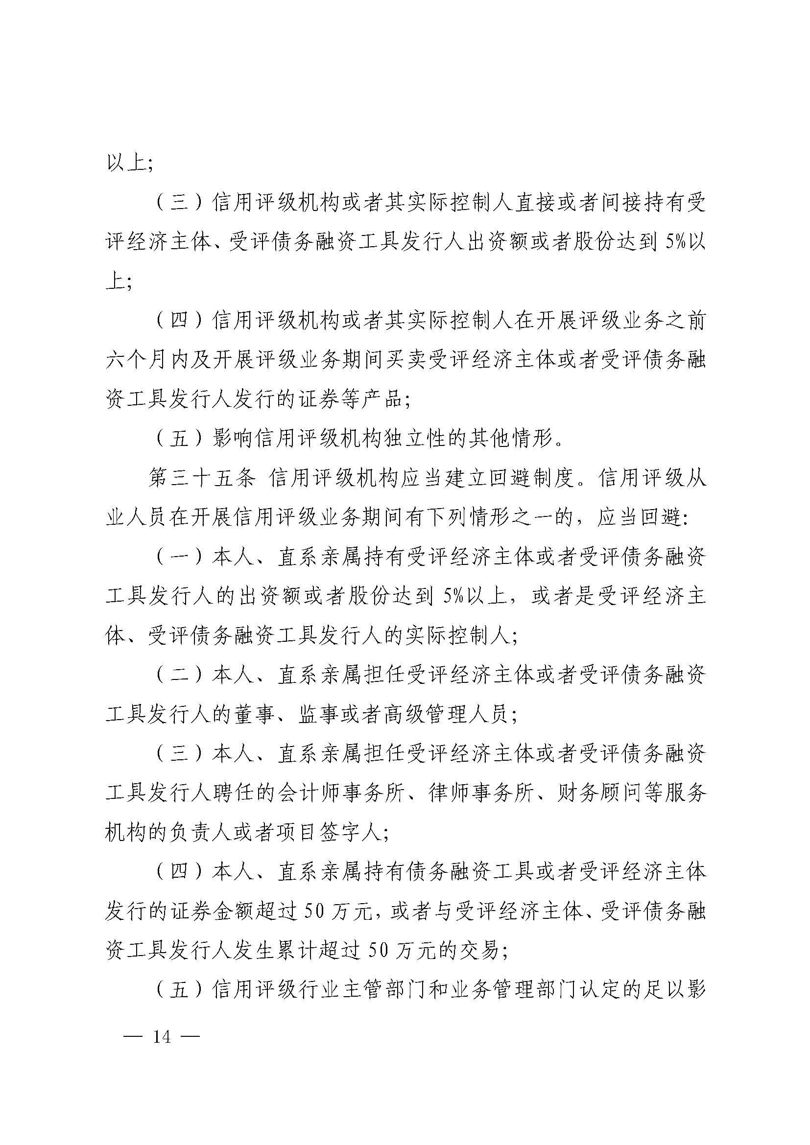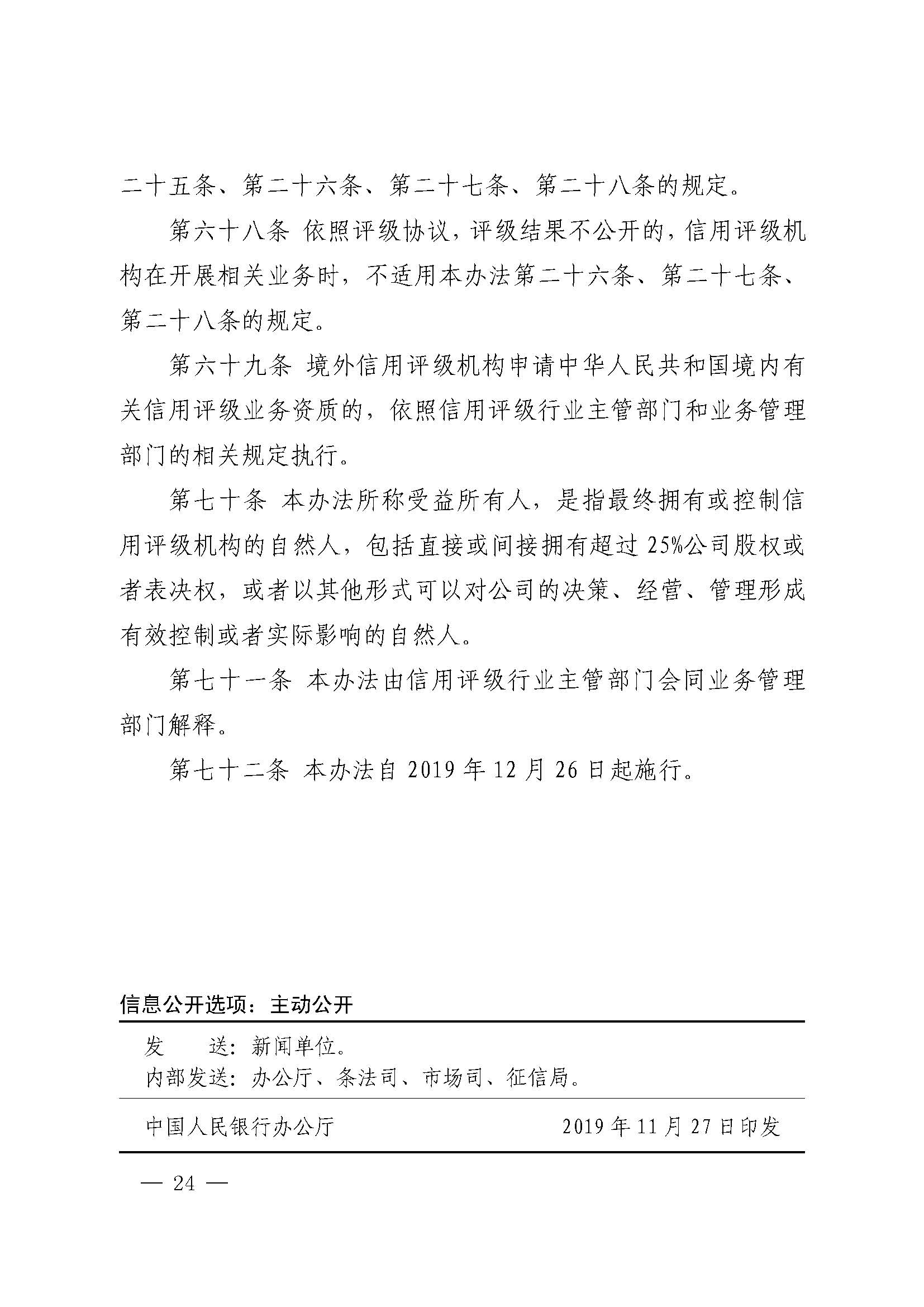中国人民银行 国家发展和改革委员会 财政部 中国证券监督管理委员会令〔2019〕第5号(信用评级业管理暂行办法)