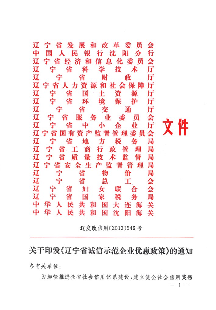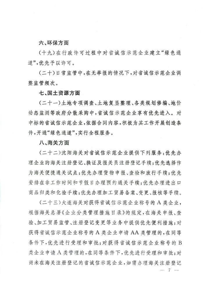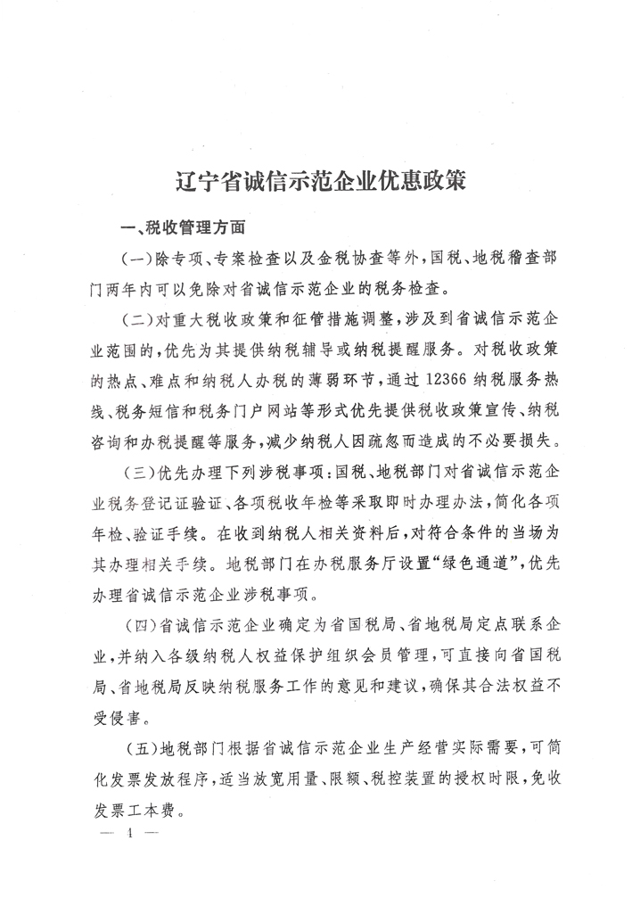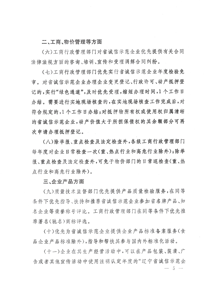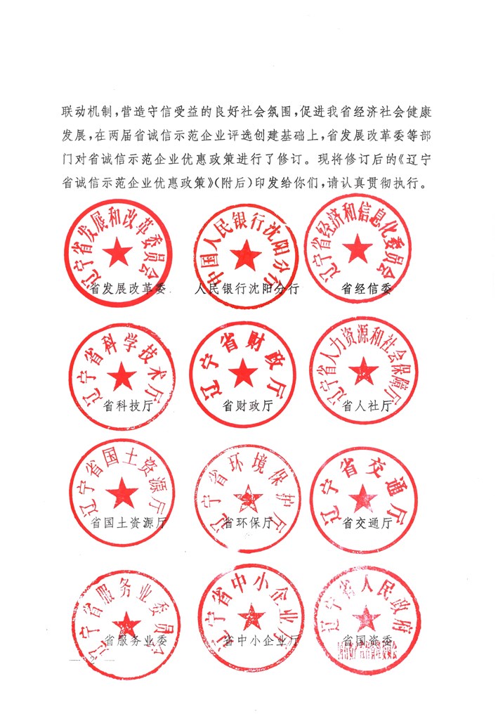 关于印发《辽宁省诚信示范企业优惠政策》的通知